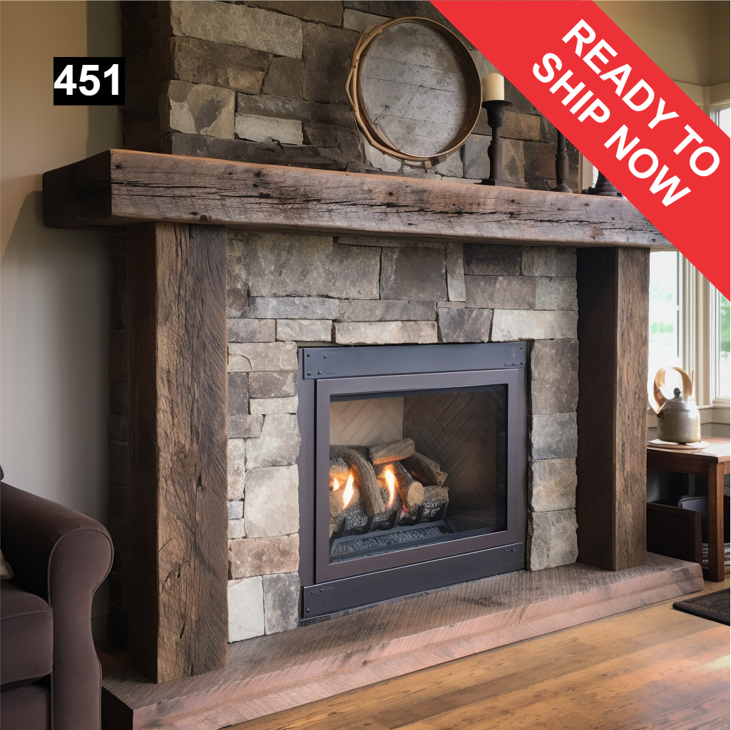 - Mantel Finish: Distressed and weathered look with light saw marks (like photo #451).